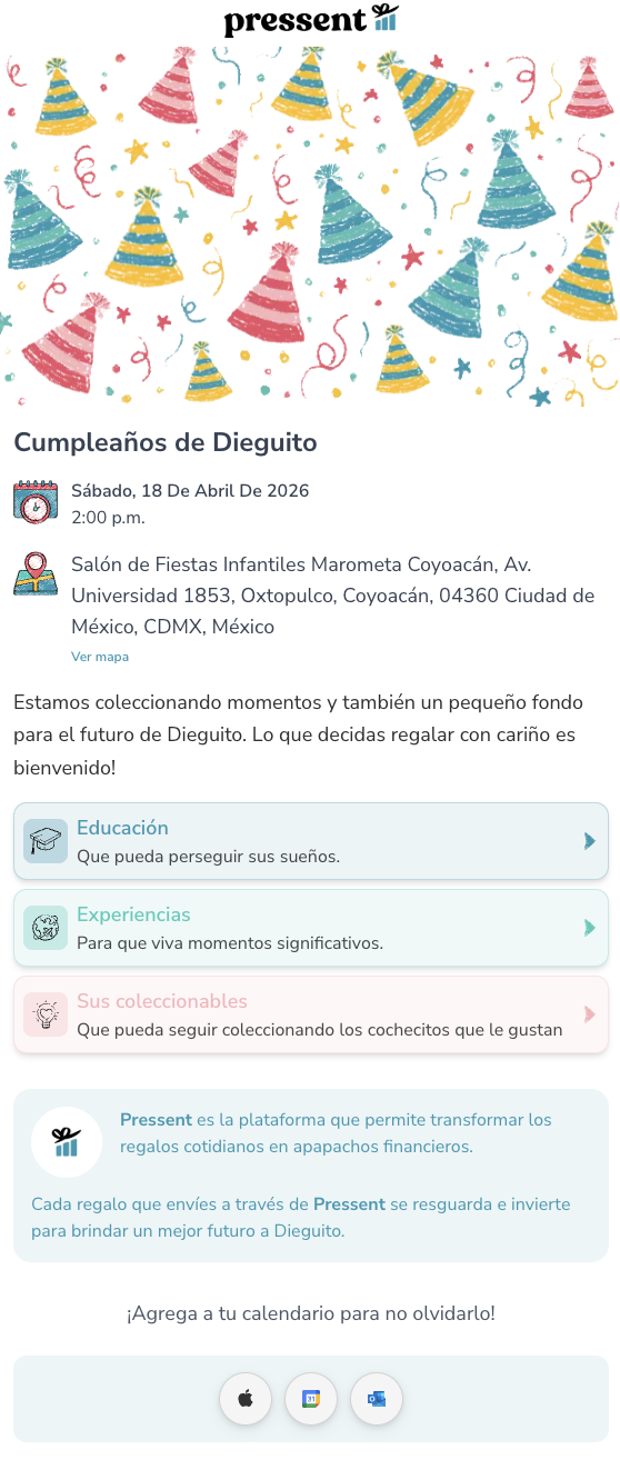 Gratis para ti, claro para la familia y con el respaldo de Pressent. Tú invitas; ellos eligen cómo sumarse.
